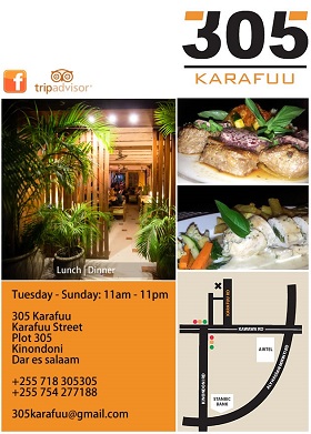 charming hospitality and fantastic cuisine is what will draw you to 305 karafuu, a gem of a restaurant tucked in the midst of a kinondoni side street. part of the dining adventure is finding this new treasure!